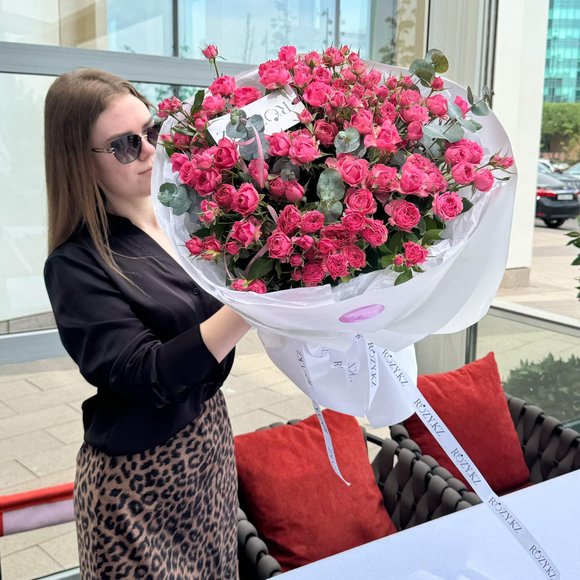 Букет из 11 веток кустовых роз с эвкалиптом Доставка цветов Астана