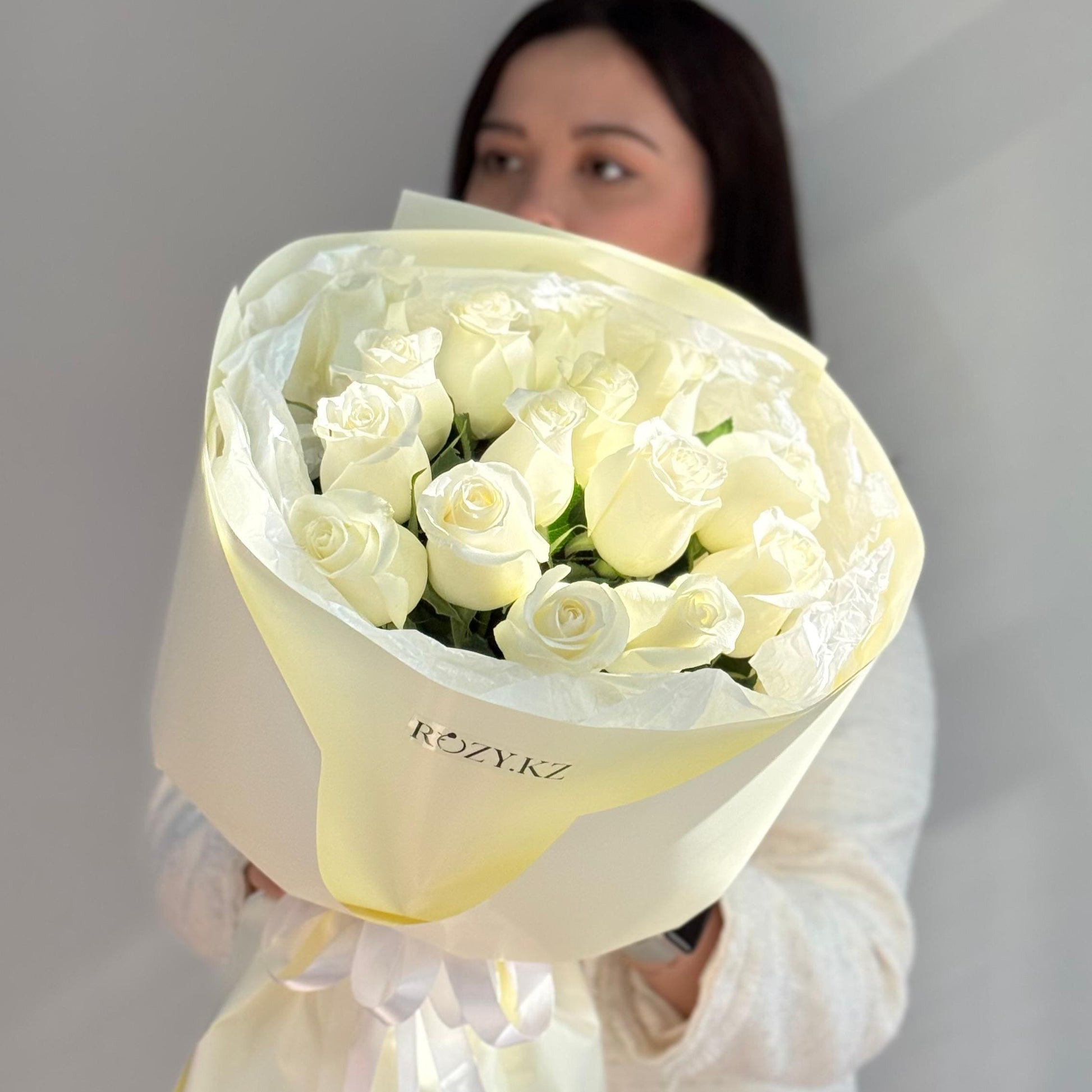 Букет из 15 белых роз в белом оформлении Доставка цветов Астана