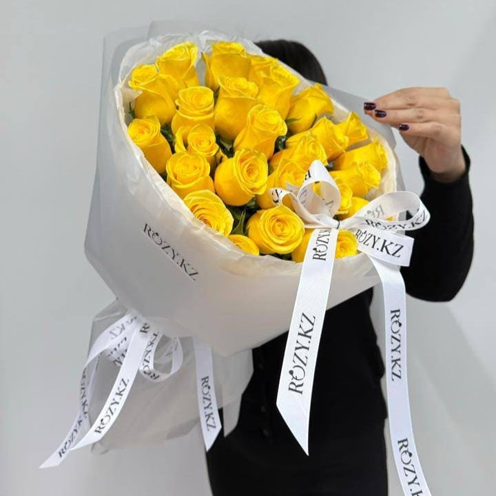 Букет из 25 жёлтых роз — символ радости, солнечного настроения и дружбы. Яркие и энергичные бутоны создают тёплую атмосферу, делая композицию идеальной для поздравлений, знаков внимания или просто чтобы поднять настроение. Быстрая доставка цветов по Астане позволит подарить этот жизнерадостный букет вовремя и порадовать близкого человека.