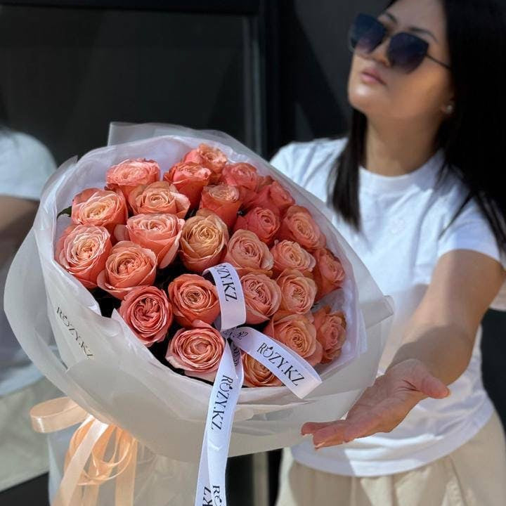 Букет из 25 роз сорта Kahala — утончённая и элегантная композиция, символ гармонии, нежности и особого шарма. Тёплый персиково-розовый оттенок делает букет выразительным и универсальным подарком для любых торжественных событий. Быстрая доставка цветов по Астане позволит подарить этот изысканный букет вовремя и порадовать получателя.