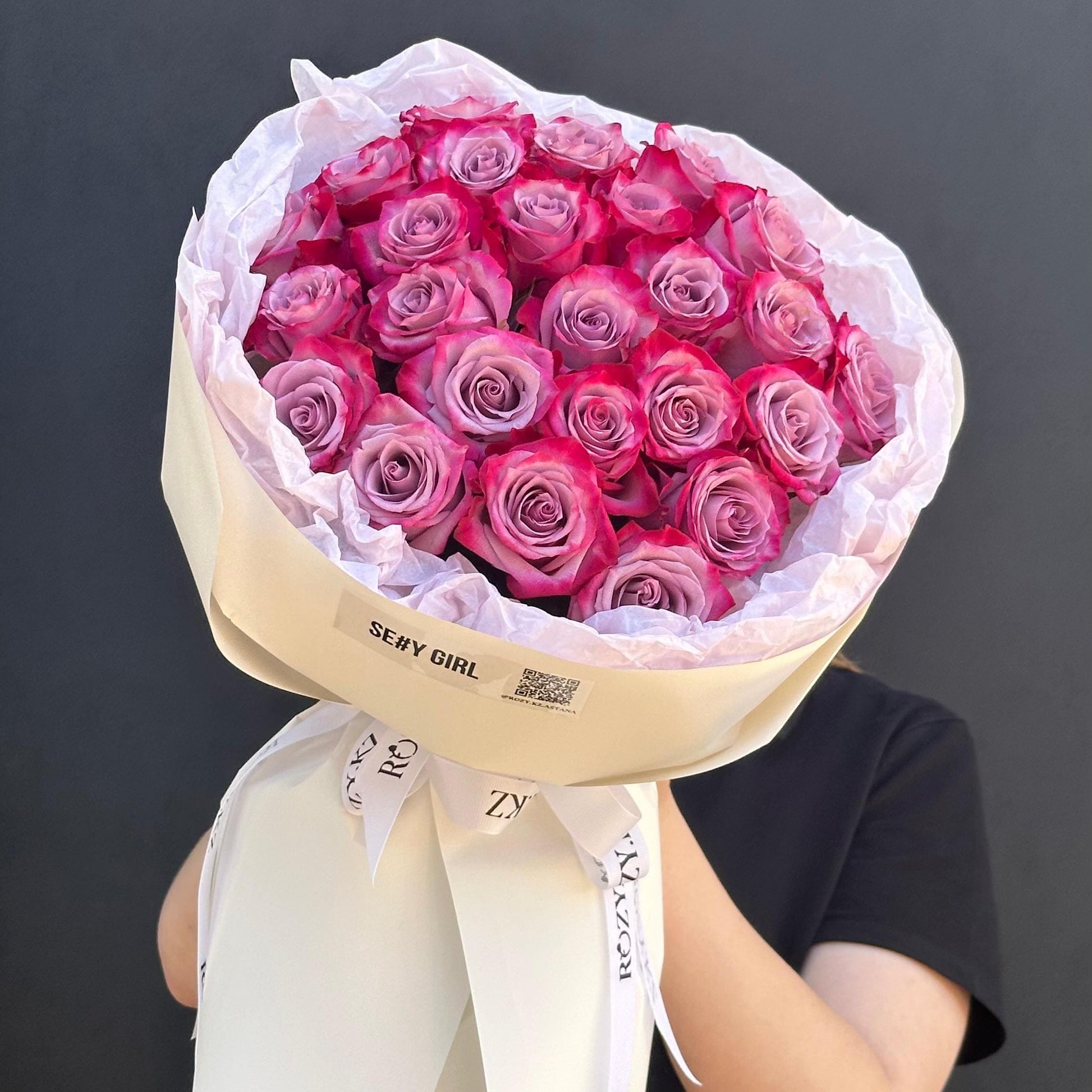 Букет из 25 фиолетовых роз — изысканная и выразительная композиция, символизирующая восхищение, загадочность и утончённость. Такой букет станет эффектным подарком для признания, торжественного события или особого момента. Быстрая доставка цветов по Астане позволит подарить его вовремя и порадовать близкого человека.