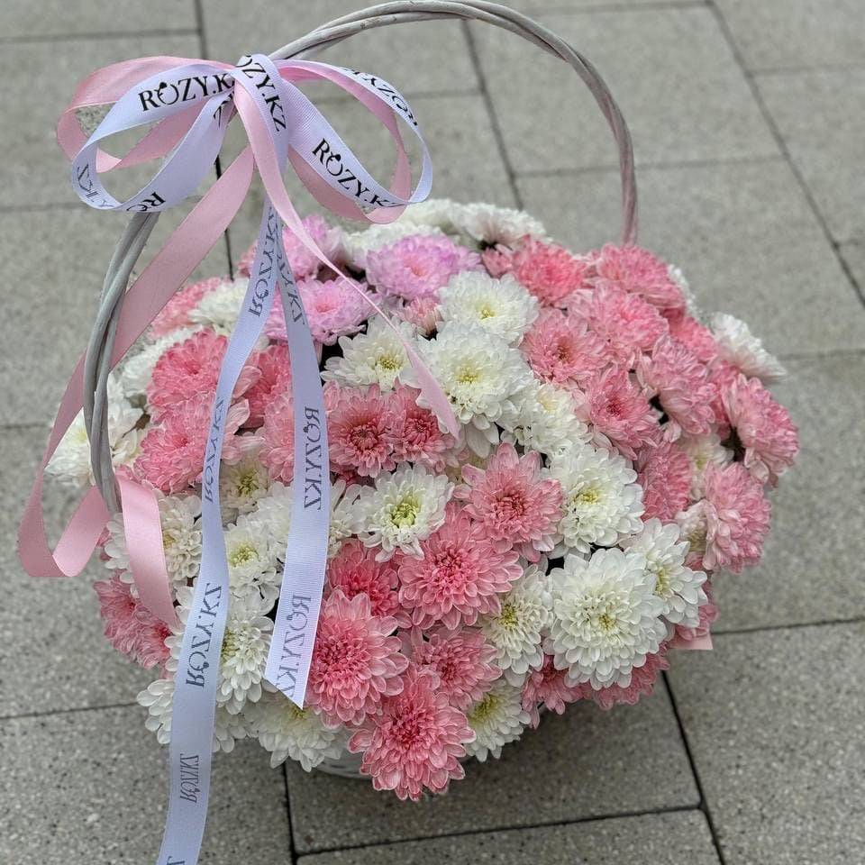 Корзина L из 15 розовых и белых хризантем Доставка цветов Астана