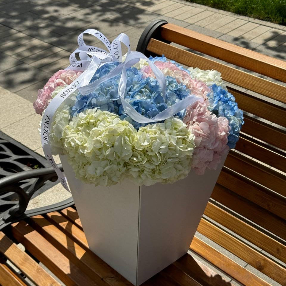Яркий букет «15 гортензий микс в стильной переноске» — символ изобилия, нежности и красоты. Разноцветные соцветия создают праздничное настроение и подчёркивают особый вкус дарителя. Такая композиция станет эффектным подарком для любого повода, а быстрая доставка цветов по Астане сделает его вручение особенно удобным.