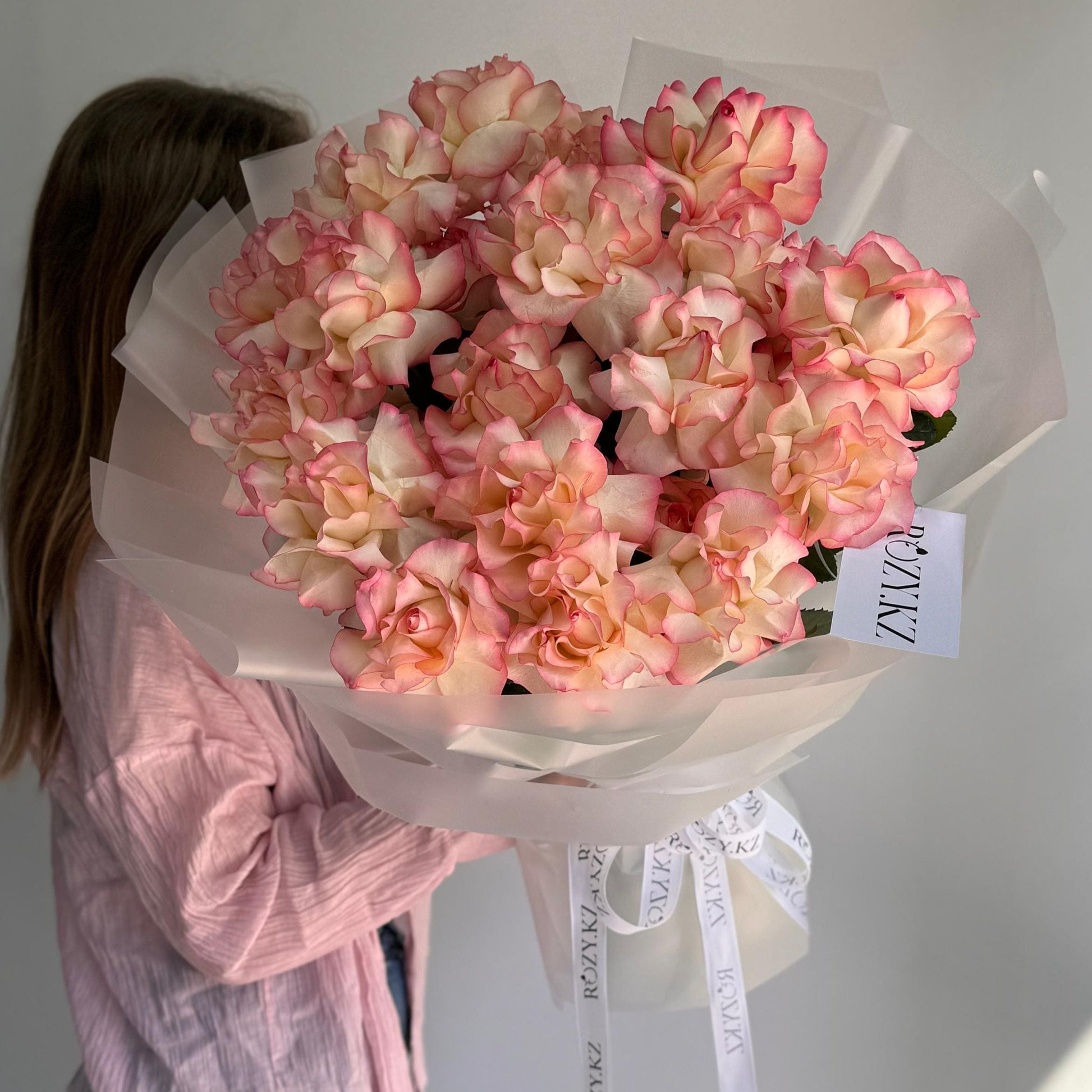 Букет из 17 французских роз сорта Джумелия — элегантная композиция, в которой утончённые розовые края лепестков плавно переходят в нежный белый оттенок. Такой букет символизирует гармонию, чистоту чувств и романтику. Он станет идеальным подарком для признания в любви, юбилея или особого события. Быстрая доставка цветов по Астане сделает этот момент ещё более запоминающимся.