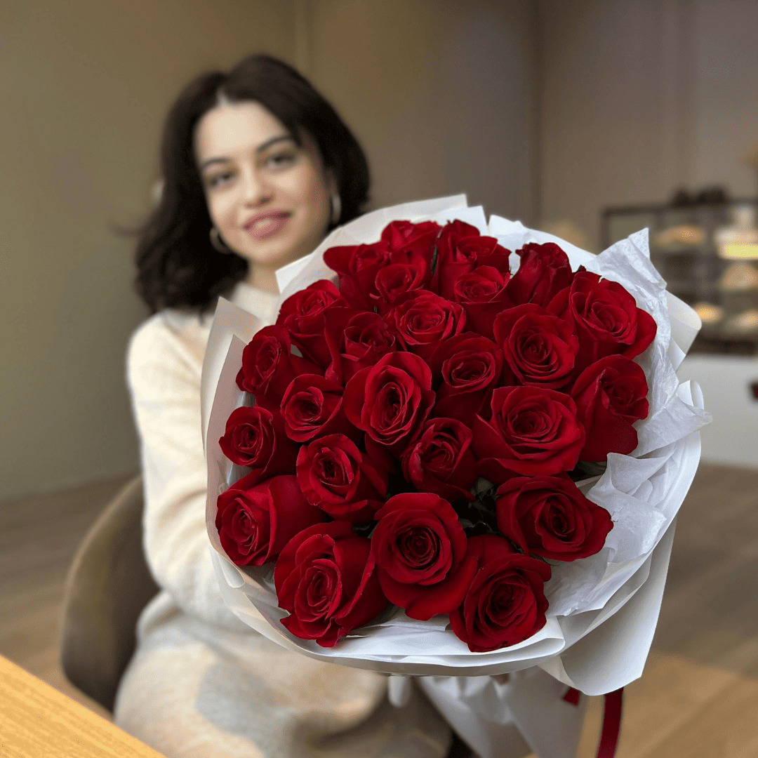 Роскошный букет из 25 красных роз — классический выбор для признания в любви, юбилея или особого праздника. Алые бутоны символизируют страсть и преданность, подчёркивая важность момента. А наша доставка цветов по Астане гарантирует, что букет прибудет свежим и впечатляющим.
